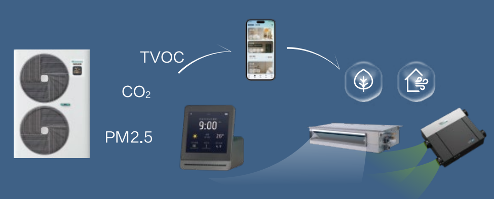 當檢測到室內CO?、PM2.5、TVOC濃度超標