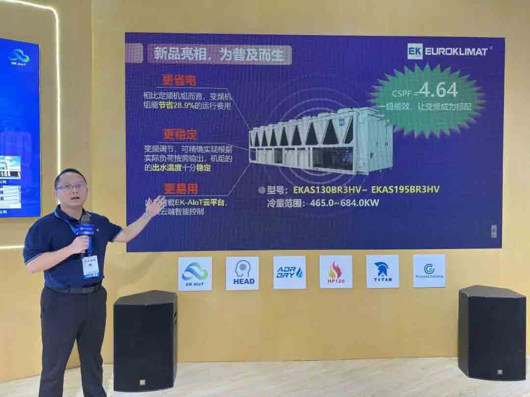 EK工業冷熱源系統事業部產品經理朱曉廣現場主持新品發布會并做方案介紹。