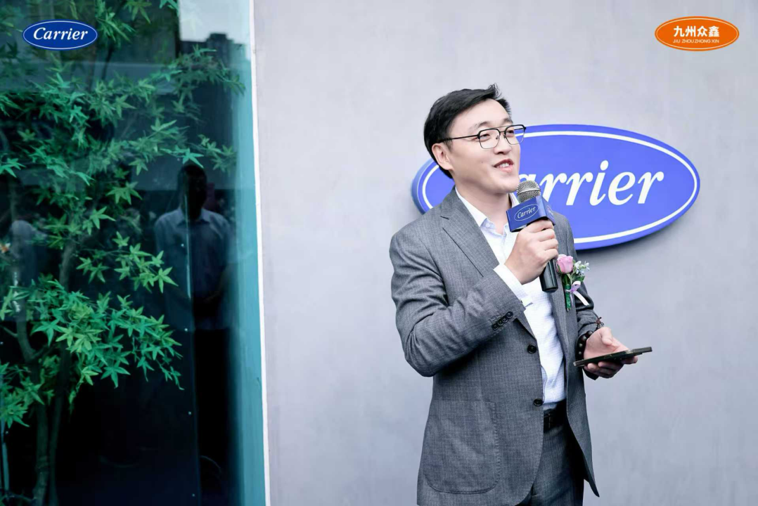開利暖通空調家用及輕商空調中國區銷售總經理李明先生則以詩意的“彩衣怒馬九州郎,攜手開利會四方”開場,精妙點明了合作的核心。“彩衣”象征著開利旗下多品牌、多產品的多元化戰略優勢,如開利藍、菲斯曼紅等,旨在滿足市場的多樣化需求。他表示,將與九州團隊攜手,在空調、地暖、凈水等領域深化拓展,服務全價值鏈伙伴,實現共創共贏。