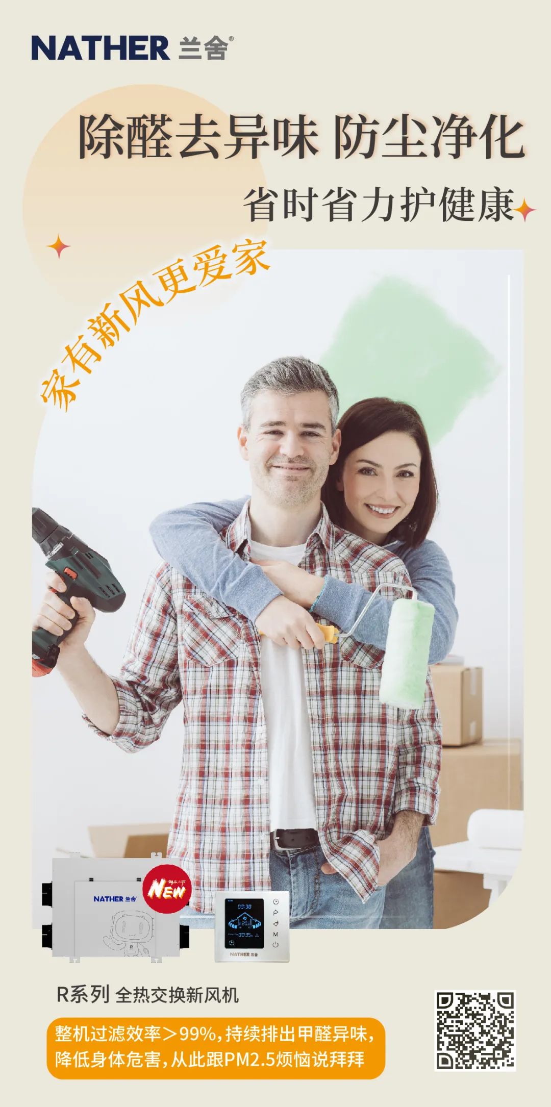 這時候就要再次為大家著重介紹一下新風系統(tǒng),它的主要功能是什么?是將室外新鮮的空氣經(jīng)過凈化過濾后送到室內(nèi),再把室內(nèi)污濁的空氣排出去,簡而言之,新風系統(tǒng)就是可以在不開窗的情況下,為室內(nèi)通風換氣。所以家中安裝一套新風系統(tǒng),就可以24小時不間斷地為室內(nèi)煥新空氣,過濾稀釋甲醛濃度,從而降低身體健康危害。