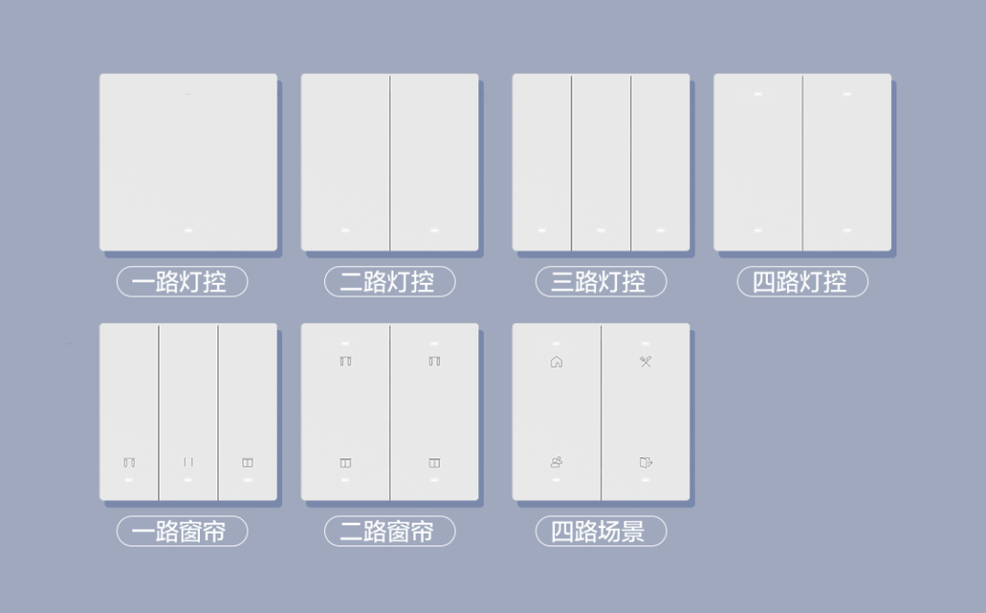 螢石玲瓏系列智能面板SW6,分為燈控、窗簾、場景三大類型,可隨心搭配。