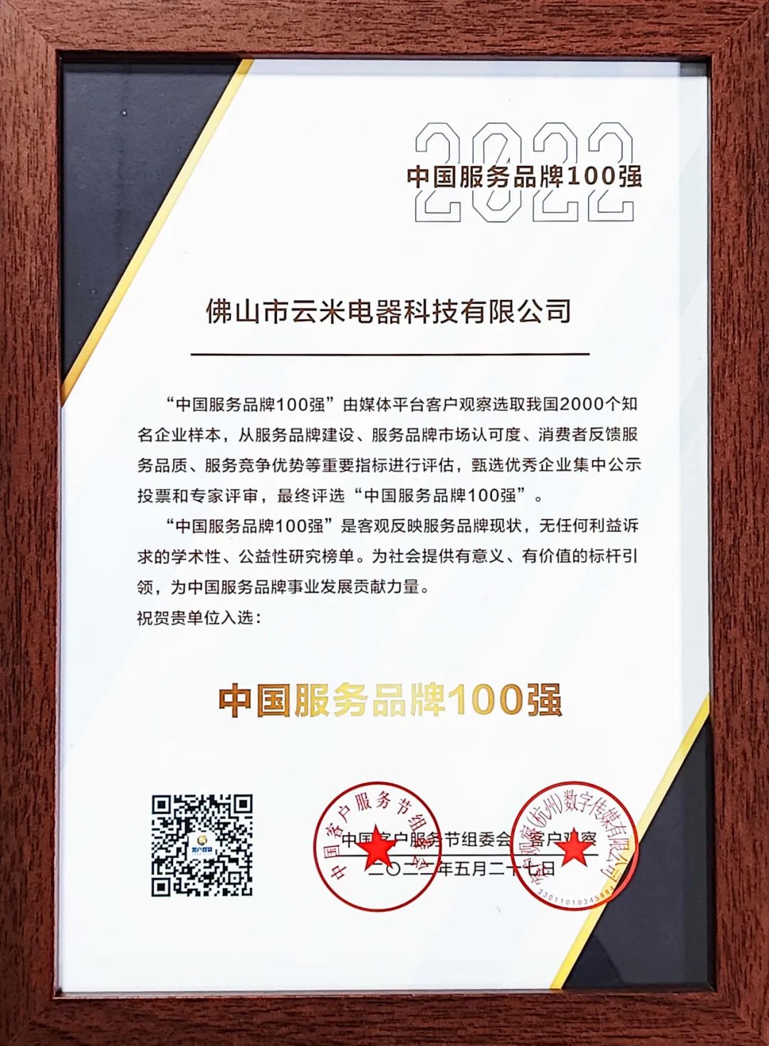 喜獲“中國服務品牌100強”榮譽,云米客戶服務體系深受認可