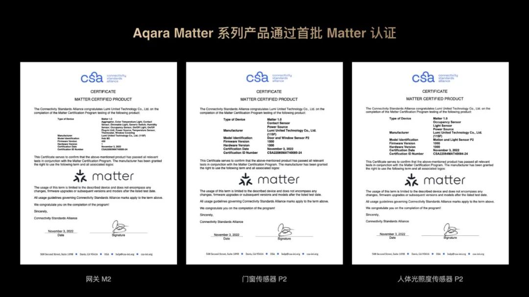 此外,Aqara 已成為首批獲得 Matter 認(rèn)證的品牌之一,目前 Aqara 網(wǎng)關(guān) M2、門窗傳感器 P2、人體光照度傳感 P2 已通過 Matter 認(rèn)證,進(jìn)一步推進(jìn)了 Matter 協(xié)議在全球的普及和落地。