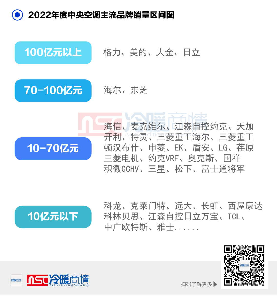 從品牌格局上看,國產(chǎn)品牌近年表現(xiàn)強勁,無論是品牌實力還是技術(shù)能力都在不斷提升,其中全國四大超100億品牌中就有2家國產(chǎn)品牌,分別是格力、美的樓宇科技,加之海爾、海信、奧克斯、天加、申菱、國祥等,國產(chǎn)品牌持續(xù)精彩呈現(xiàn)在大型工業(yè)項目、軌道交通、數(shù)據(jù)中心、醫(yī)療衛(wèi)生以及住宅配套等領(lǐng)域,發(fā)展勢頭給力。