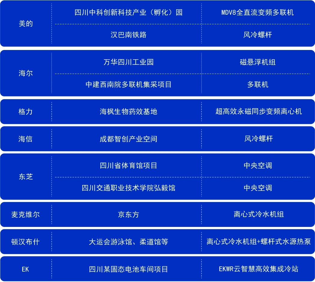 四川工程市場近兩年一直處于增長的態勢,在醫院、新能源、電子廠房為代表的細分市場的助力下,部分品牌上半年在工程項目市場的出貨增長十分明顯。值得一提的是,從2022年至今,大運會場館建設等也進一步促進了工程市場新的增長點,與此同時帶來的是周邊配套設施的增加,諸如餐飲、酒店、娛樂等行業顯著回暖,中小項目數量有所提升。正因如此,離心機、螺桿機、模塊機、末端等市場均有不同幅度的增長。