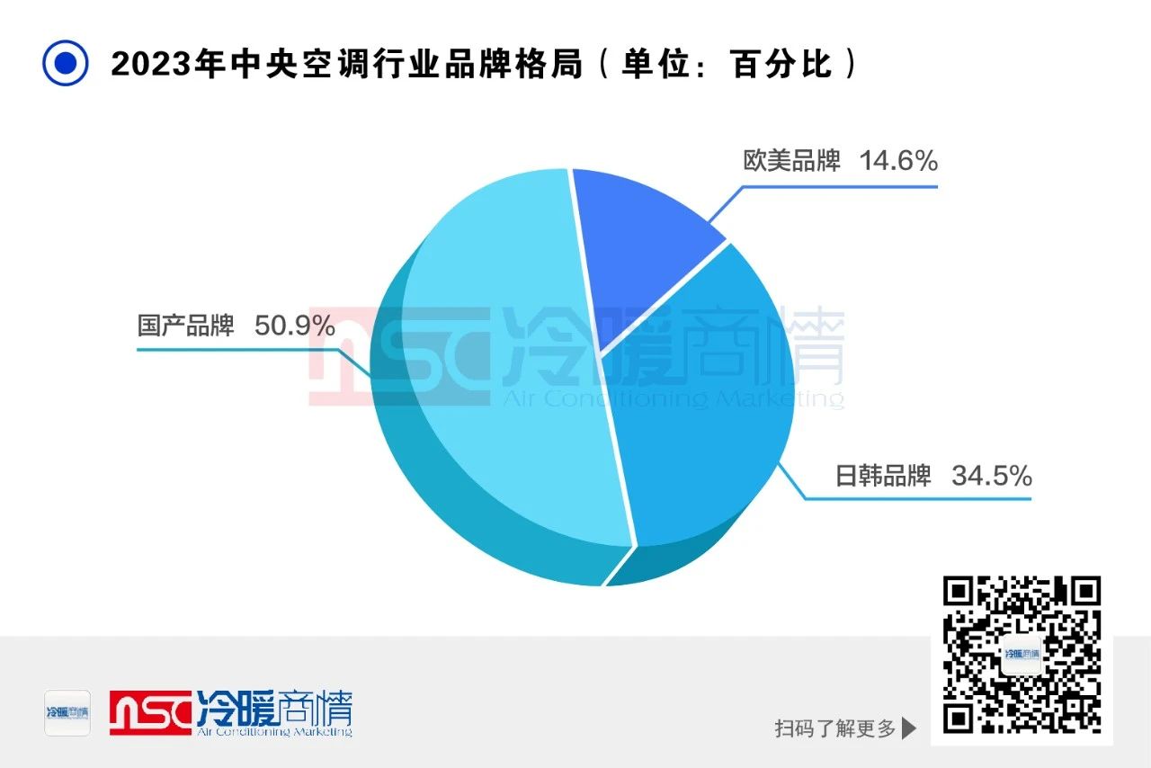 2023年,國內(nèi)中央空調(diào)行業(yè)品牌集中度持續(xù)上升,頭部品牌市場(chǎng)格局穩(wěn)定。